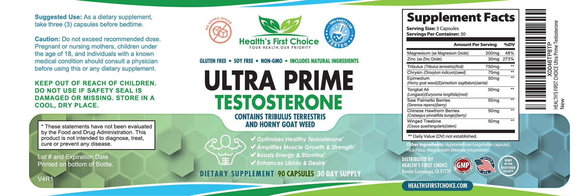 Unlock your full potential with Ultra Prime Testosterone by Health's First Choice, the ultimate supplement designed to enhance your strength, stamina, and overall vitality. Formulated with a powerful blend of natural ingredients, Ultra Prime Testosterone is your key to achieving peak performance and maintaining optimal health.